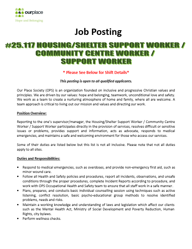 #25.117 Housing/Shelter Support Worder /